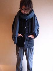 中にVネック物を入れて薄手のJKTを重ね、更にダッフルJKTを着用した重ね着防寒対策スタイルです☆