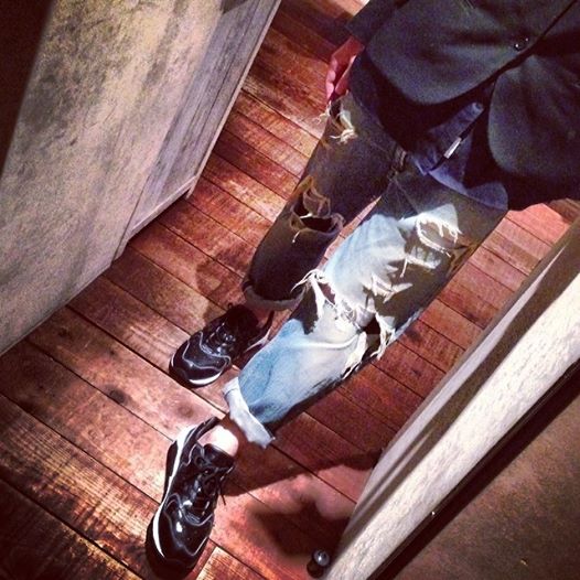 今日は久しぶりにワイドなシルェットのLevis66ダメージデニムにジャケットのスタイルで出勤