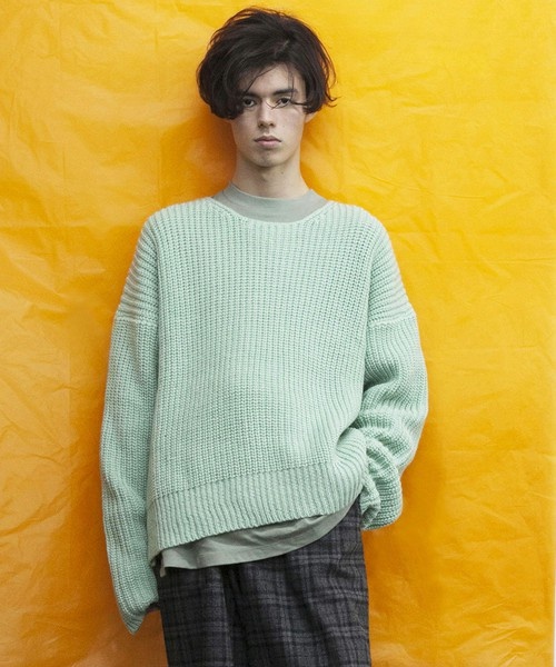 2週類の糸を使用したショート丈 ビッグシルェットニット